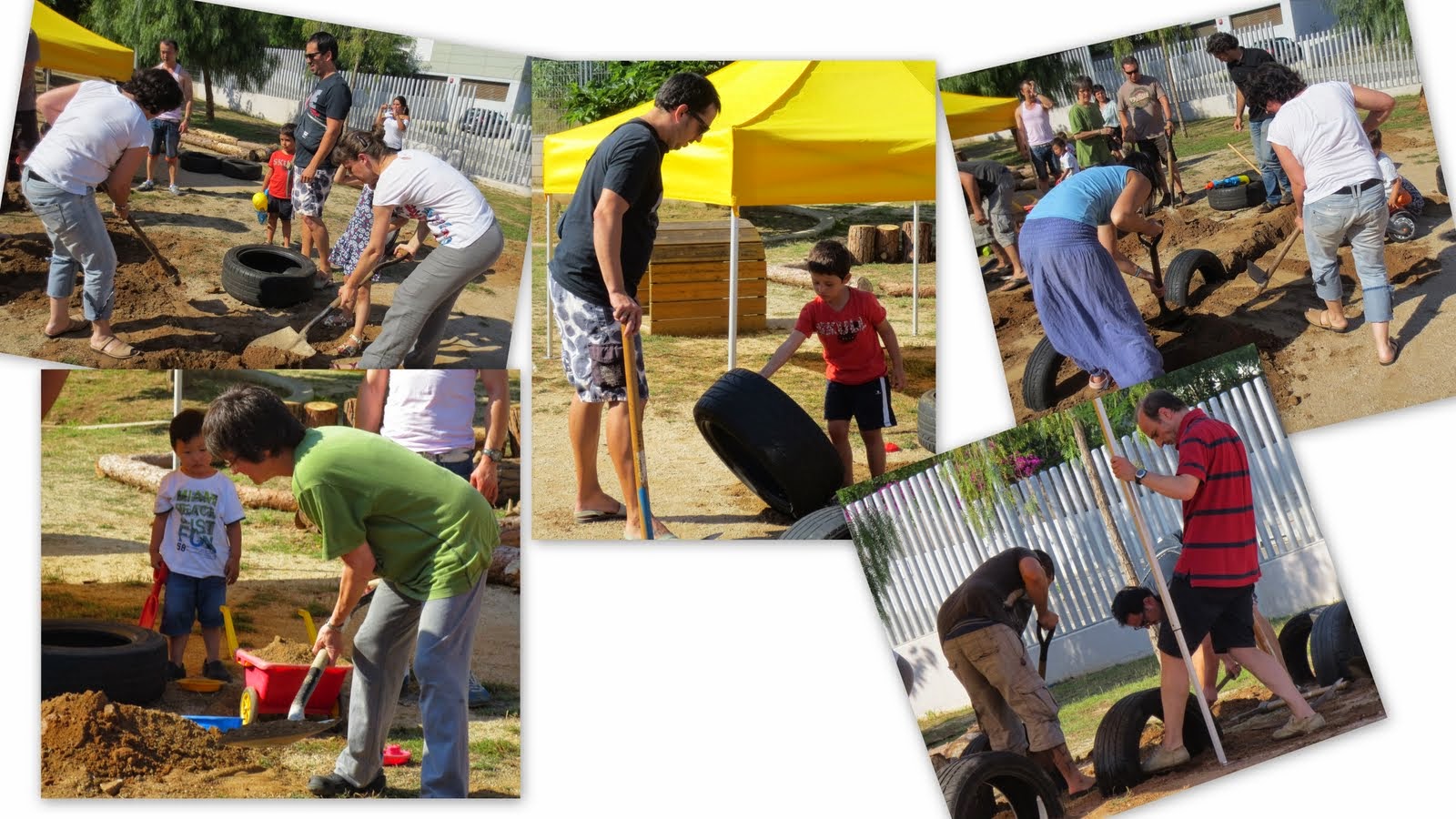 Entre tots/es vàrem estar fent forats i clavant rodes al terra, per a que els infants tinguin un nou element de joc, que promogui el moviment lliure i els ajudi a conèixer el seu cos i les seves possibilitats!